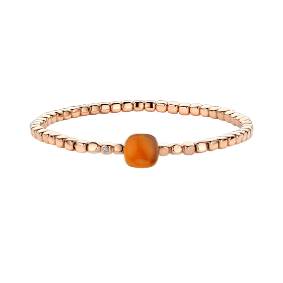 De schoonheid van eenvoud en de schoonheid van het leven. Dat is waarvoor het Belgische juwelenmerk Bigli staat. De sieraden van Bigli leven altijd mee met de trends, maar overleven ze ook. Ze zijn tijdloos, stijlvol en persoonlijk. Bigli juwelen laten je stralen. Bigli's meest iconische collectie Mini Sweety biedt glansrijke cabochonstenen in 49 kleuren, die ontstaan door een unieke lagentechniek. Draag je Mini Sweety sieraad apart als krachtig statement of combineer naar hartenlust en speel met de verschillende tinten. Elk Mini Sweety juweel is uniek, net als jij! Voel je kostbaar en onvergelijkbaar met deze Bigli Mini Sweety Halsketting 26AS03Rmcmp_16. Het juweel is vervaardigd uit het fijnste 18 karaat roségoud. Het is bovendien bezet met schitterende briljant en natuurlijke edelstenen: madeira citrien met parelmoer. Shine on met Bigli. Kom ons aanbod bekijken in onze Jan Maes winkel in het Waasland of Wijnegem Shopping Center. We helpen je graag verder! Of koop de exclusieve Bigli juwelen online bij Jan Maes. We leveren je nieuwe sieraad in een stijlvolle juwelendoos waarin je ook het echtheidscertificaat terugvindt.