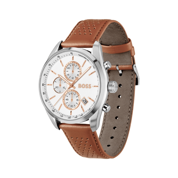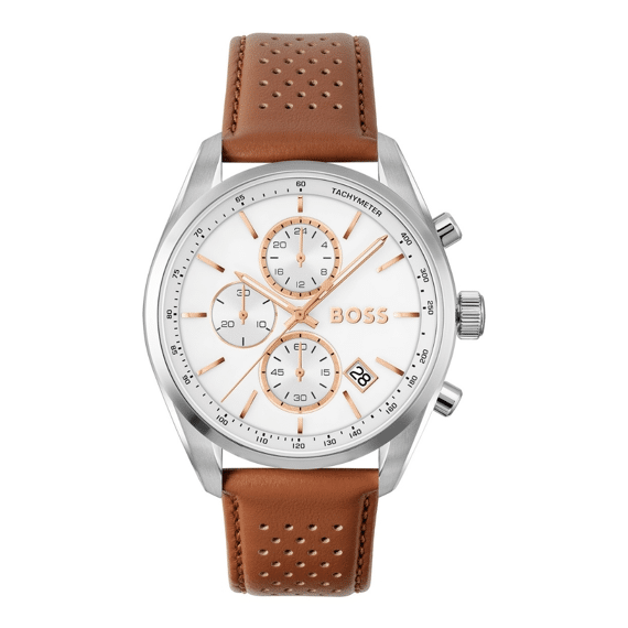 Geef jouw outfit een premium accent met de horloges van BOSS Watches. Dit BOSS horloge Grand Prix 44 1514313 bestaat uit een stalen kast en bruin lederen band. Het is analoog afleesbaar en wordt aangedreven door een kwartsgangwerk. Met dit BOSS Watches horloge laat je altijd en overal een goede indruk na, ongeacht de gelegenheid. Kies voor stijlvolle verfijning en koop dit BOSS uurwerk eenvoudig online bij Jan Maes. Als officiële verdeler van HUGO BOSS horloges leveren wij de originele horlogedoos mee en geniet je van twee jaar garantie op fabricagefouten. Ook na de garantieperiode kan je bij ons terecht voor herstellingen en onderdelen.