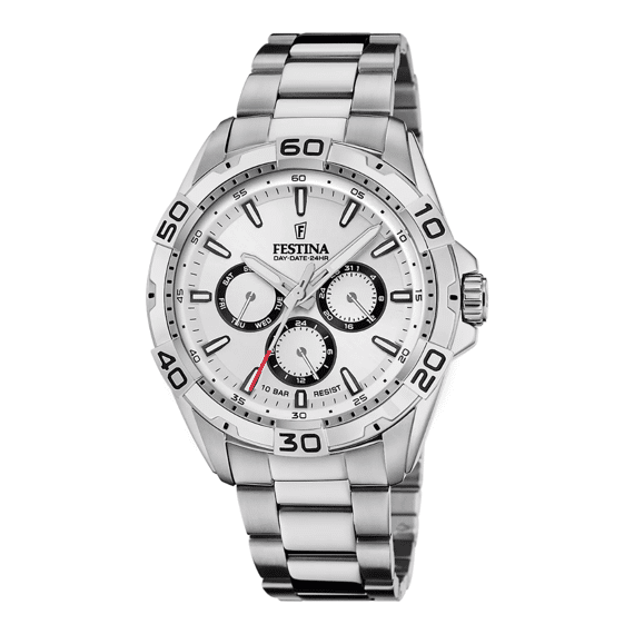 Festina always fits. Man of vrouw. Jong of oud. Elegant of sportief. Wie je ook bent en waar je ook van houdt. Een uurwerk van Festina past altijd. Al sinds 1902 maakt Festina stijlvolle horloges van staalharde kwaliteit volgens de Zwitserse knowhow. De designs bruisen van charme en charisma! Dit Festina horloge F20623/1 bestaat uit een stalen kast en band. Het uurwerk is analoog afleesbaar en beschikt over een kwartsgangwerk met chronograaf. Ervaar tijd als een emotie met Festina. Hoofd en hart. Rede en passie. Functionaliteit en elegantie. Bij Festina valt alles samen. Shop jouw Festina horloge online bij Jan Maes. We leveren je nieuwste aanwinst met veel zorg bij je thuis in de originele verpakking, inclusief twee jaar fabrieksgarantie.
