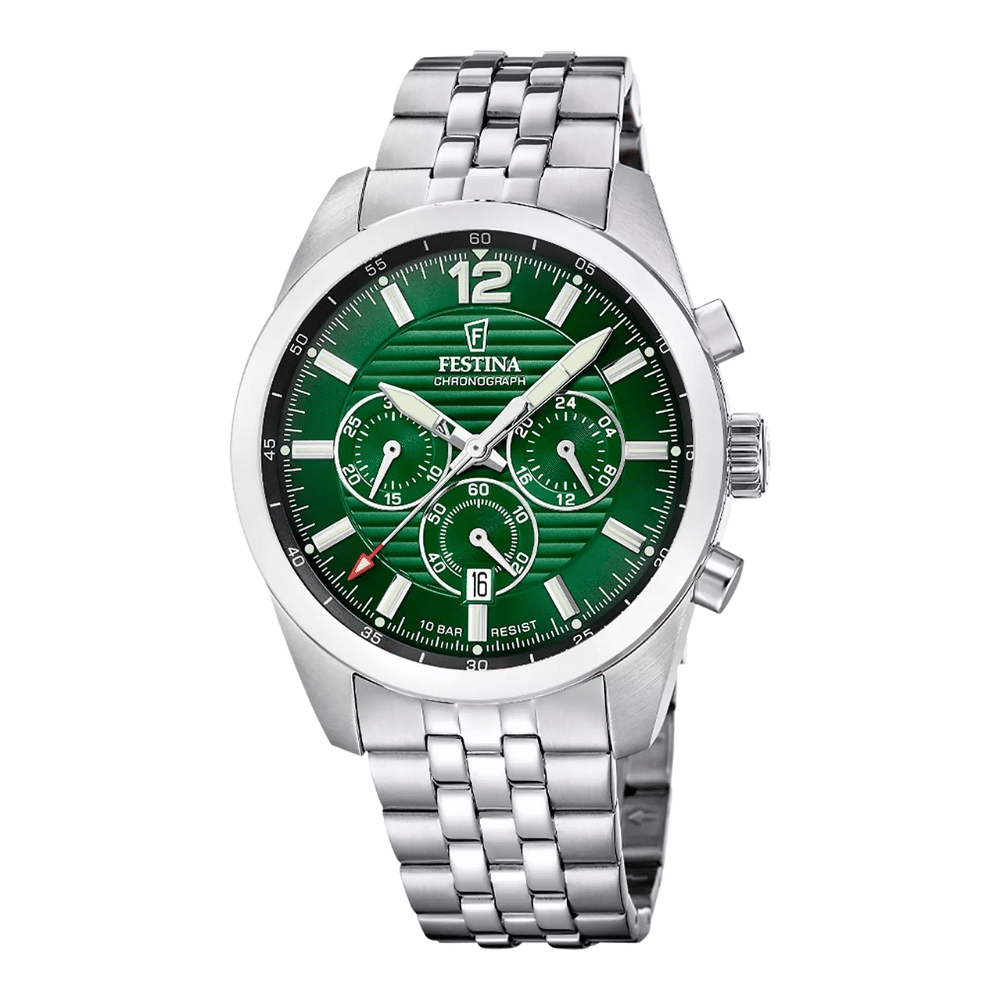 Festina always fits. Man of vrouw. Jong of oud. Elegant of sportief. Wie je ook bent en waar je ook van houdt. Een uurwerk van Festina past altijd. Al sinds 1902 maakt Festina stijlvolle horloges van staalharde kwaliteit volgens de Zwitserse knowhow. De designs bruisen van charme en charisma! Dit Festina horloge F20742/5 bestaat uit een stalen kast en band. Het uurwerk is analoog afleesbaar en beschikt over een kwartsgangwerk met chronograaf. Ervaar tijd als een emotie met Festina. Hoofd en hart. Rede en passie. Functionaliteit en elegantie. Bij Festina valt alles samen. Shop jouw Festina horloge online bij Jan Maes. We leveren je nieuwste aanwinst met veel zorg bij je thuis in de originele verpakking, inclusief twee jaar fabrieksgarantie.