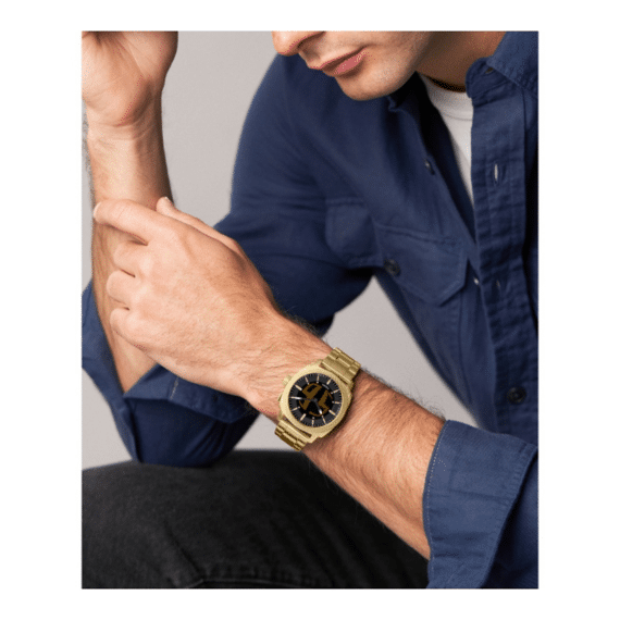 Fossil Machine FS6157 is een modern en opvallend herenhorloge dat klassieke stijl combineert met een frisse, technische touch. Met zijn robuuste goudkleurige roestvrijstalen kast en band straalt dit model een stoere, tijdloze uitstraling uit die perfect past bij zowel dagelijkse outfits als meer formele looks. De unieke wijzerplaat met groot digitaal seconden-display en zwarte indexen zorgt voor een eigentijdse twist, terwijl het quartzuurwerk betrouwbare precisie biedt. Dankzij de waterbestendigheid tot 50 meter en de hoogwaardige afwerking is dit horloge een stijlvolle, functionele metgezel voor elke dag. Bestel eenvoudig online bij Jan Maes en krijg je nieuwste aanwinst met zorg bij je thuis geleverd, in zijn originele verpakking met twee jaar fabrieksgarantie.
