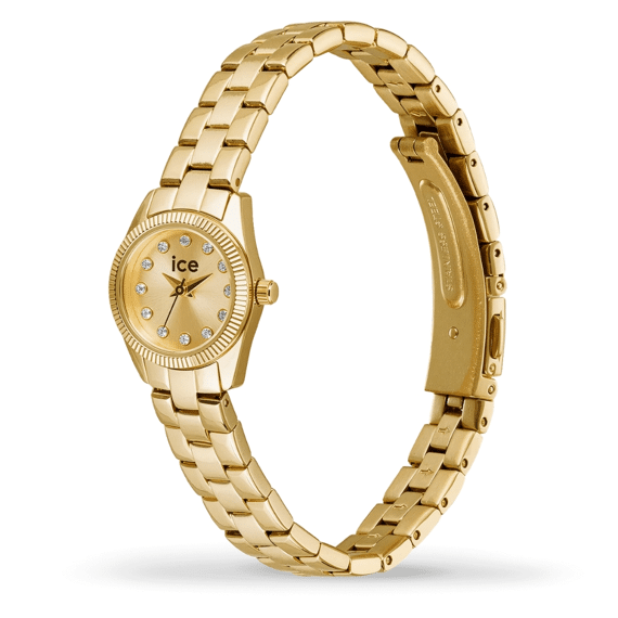 Het Ice-Watch ICE Mimi dameshorloge 025539 combineert een verfijnd, minimalistisch design met een frisse en vrouwelijke uitstraling. De ultradunne goudkleurige roestvrijstalen kast en het elegante stalen bandje met verstelbare sluiting zorgen voor een comfortabele en stijlvolle pasvorm rond elke pols. De sprankelende gouden wijzerplaat vormt een subtiel kleuraccent dat dit dameshorloge perfect maakt voor zowel dagelijks gebruik als een geklede gelegenheid. Het betrouwbare quartz uurwerk garandeert een nauwkeurige tijdsaanduiding. Met een waterbestendigheid van 3 ATM is dit Ice-Watch horloge bestand tegen spatwater en ideaal als modieus én praktisch accessoire. Een tijdloos dameshorloge dat elegantie en moderniteit moeiteloos samenbrengt. Shop je nieuwe Ice Watch ICE Mini horloge online bij Jan Maes. We verpakken je nieuwe Ice Watch in de originele horlogebox.