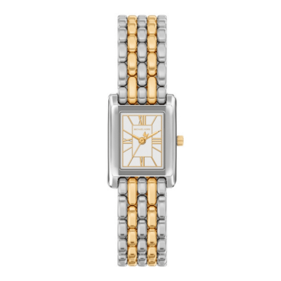 Ontdek het elegante Michael Kors dames Essex MK4999, een verfijnd horloge dat subtiele luxe en tijdloze stijl samenbrengt. Dit rechthoekige model in wit- en goudkleurig roestvrij staal heeft een slanke kast met klassieke Romeinse indexen op de analoge wijzerplaat, wat zorgt voor een elegante uitstraling die moeiteloos schakelt tussen dagelijkse chic en feestelijke gelegenheden. Het betrouwbare quartz-uurwerk en de fijne, bijpassende schakelband maken dit Essex horloge tot een stijlvolle, draagbare must-have voor wie houdt van een verfijnde, vrouwelijke touch aan elke outfit. Bestel eenvoudig online bij Jan Maes en krijg je nieuwste aanwinst met zorg bij je thuis geleverd, in zijn originele verpakking met twee jaar fabrieksgarantie.
