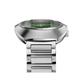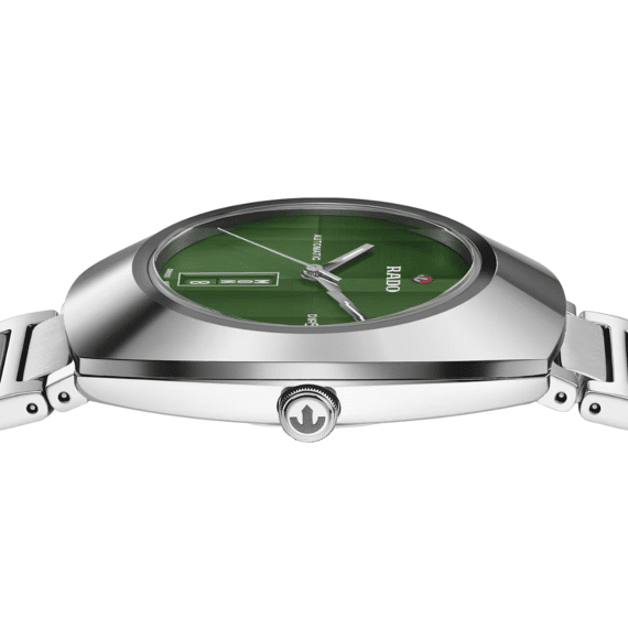 Bekend als "s werelds eerste krasbestendige horloge", was de DiaStar 1, die in 1962 werd gelanceerd, Rado's reactie op de vraag van klanten naar comfort, robuustheid en exclusieve stijl. Een uitstekend voorbeeld van Rado's innovatieve benadering van ontwerp en materialen, bracht dit horloge hard metaal en saffierglas in de horlogemakerij op een moment dat dit verre van de norm was. Dit unieke DiaStar Original R12160303 heeft een diameter van 38 mm en is waterbestendig tot 100 meter. Het horloge is omlijst door een ultraglinsterende Ceramos™ kast met gepolijste hoeken en details, geplaatst op een bijpassende, monochrome roestvrijstalen kast. Het geheel wordt afgewerkt met een saffierglas met facetgeslepen parallelle strepen. De specificaties omvatten een groen geborsteld wijzerplaat met twee richtingen, rodiumkleurige wijzers met witte Super-LumiNova® en een dag-datumweergave in de kleur van de wijzerplaat. Binnenin bevindt zich het automatische Rado R764-uurwerk met antimagnetisch Nivachron™, dat een gangreserve van 80 uur biedt. De armband is vervaardigd uit gepolijst en geborsteld roestvrij staal. Op zoek naar een uurwerk voor het leven? Ontdek de RADO collectie online bij Jan Maes of in onze winkels. We leveren je Swiss Made RADO veilig in een luxe horlogebox.