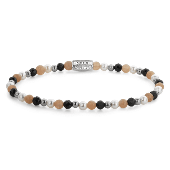Bepaal je eigen stijl met deze Rebel & Rose kralenarmband Black Glam Rocks Party Silver RR-40161-S. Deze armband is met oog op duurzaamheid vervaardigd uit een roestvrijstalen sluiting en natuurstenen. Door het gebruik van natuurstenen is elke armband uniek, net als jij. Rebelleer als een free spirit en kies voor authenticiteit met de juwelen van Rebel & Rose. Bestel je online bij Jan Maes, dan mag je vertrouwen op een verzorgde thuislevering.