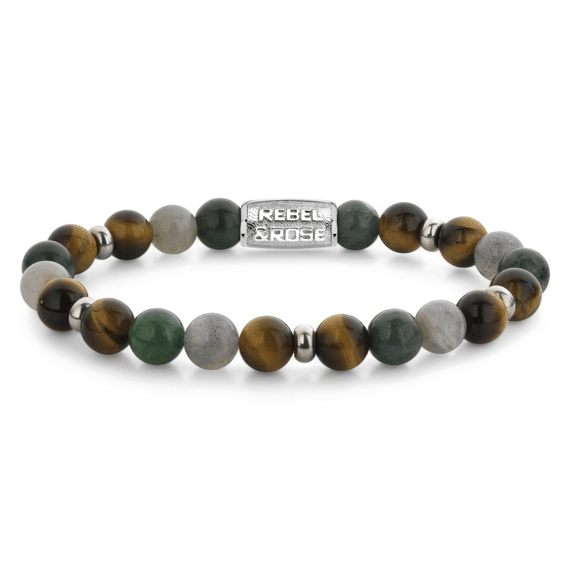 Bepaal je eigen stijl met deze Rebel & Rose kralenarmband Mountain Forest RR-80119-S. Deze armband is met oog op duurzaamheid vervaardigd uit een roestvrijstalen sluiting en natuurstenen. Door het gebruik van natuurstenen is elke armband uniek, net als jij. Rebelleer als een free spirit en kies voor authenticiteit met de juwelen van Rebel & Rose. Bestel je online bij Jan Maes, dan mag je vertrouwen op een verzorgde thuislevering.