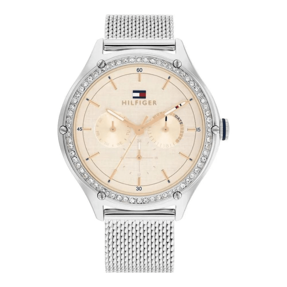Kom op tijd in stijl met dit Tommy Hilfiger horloge Lexi 1782654. Het uurwerk bestaat uit een stalen kast en band. Het is analoog afleesbaar en wordt aangedreven door een kwartsgangwerk met multifunctie. Daarnaast is het waterdicht tot 30 meter. Dankzij de iconische sporty chic uitstraling van Tommy Hilfiger draag je dit horloge met plezier elke dag, ongeacht je leeftijd, outfit of de gelegenheid. Bestel de gegeerde Tommy Hilfiger horloges eenvoudig online bij Jan Maes en krijg ze met zorg thuis geleverd in hun bijhorende merkdoos. De fabrieksgarantie van twee jaar wordt uiteraard meegeleverd.